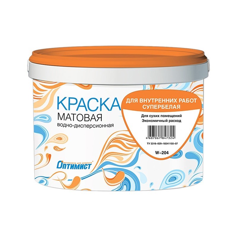 Краска Оптимист W204 в/д, влагостойкая, интерьерная, супербелая 3 кг (2 л)