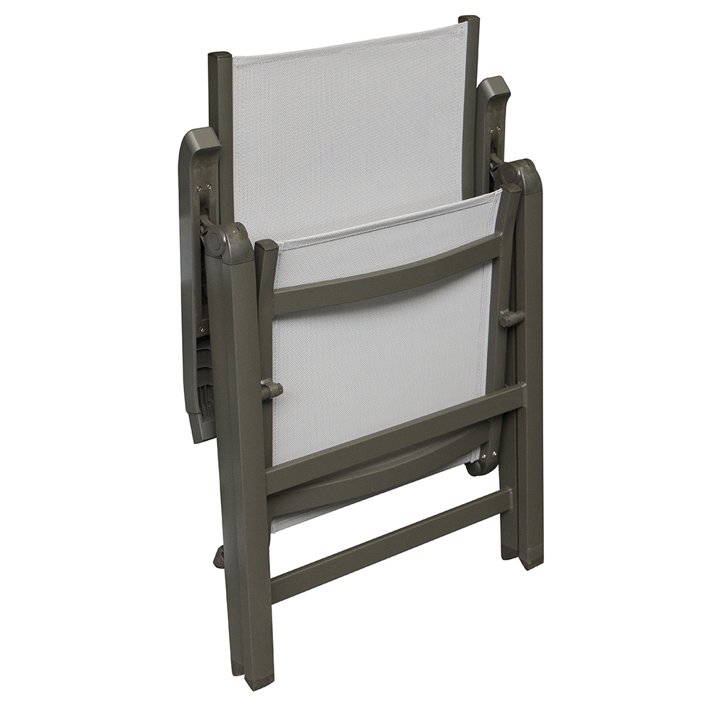 Кресло FDA90083 имеет прочный алюминиевый каркас, который покрыт порошковой краской для защиты от влаги и атмосферных воздействий. Материал хорошо отталкивает воду, быстро сохнет и устойчив к УФ-лучам. Высокая спинка и сидение изготовлены из текстилена, который обеспечивает комфорт при сидении и не растягивается. Материал обладает грязеотталкивающими свойствами, устойчив к влаге и за ним легко ухаживать. Изделие имеет регулировку спинки в четырех положениях (достаточно приподнять подлокотники). Складная конструкция позволяет экономить место при хранении.