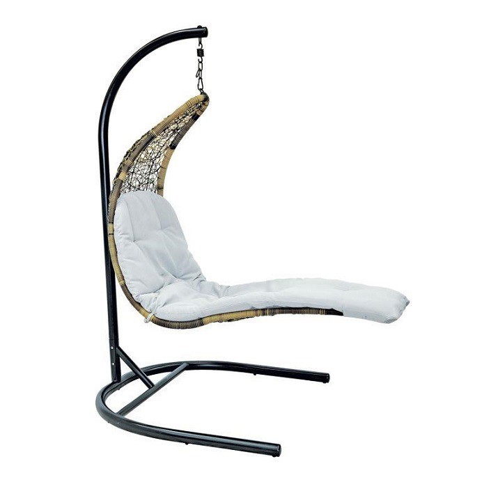 Подвесное кресло — удивительный атрибут для Вашей дачи, квартиры, балкона или загородного дома! Эти чудесные кресла помогают уединиться и расслабиться и взрослым и детям, и даже домашним питомцам. Подвесные кресла способны создать по-настоящему комфортные условия для отдыха. Подвесное кресло-шезлонг Relaxa – самая удобная и расслабляющая модель коллекции. Это очень привлекательный предмет для тех, кто предпочитает отдыхать полулежа. "Relaxa" не останется незамеченным, украсит пространство и станет центром притяжения. Представленное кресло-шезлонг выполнено в нестандартном, интересном цвете коричневый микс, который отличается сочетанием светлых, бежевых и темных, коричневых оттенков. Богатая палитра красок натуральных оттенков красиво играет, как бы пестрит на ротанговом полотне. Такой цвет очень нейтрален, универсален и элегантен. Стойка окрашена в строгий и элегантный черный цвет. Великолепие этого кресла удачно дополняет объемная, мягкая светло-серая подушка из полиэстера. Она придаст ощущение особого комфорта. Ткань имеет водоотталкивающие свойства. Основа кресла Relaxa выполнена из стали, благодаря чему оно может выдерживать вес до 120 кг. С креслом не будет проблем с монтажом. Его не нужно крепить к потолку, так оно подвешивается на стальную опору, которую можно поставить в любом месте, будь то комната, веранда, терраса, сад, открытое патио, любое другое место. Конструкция кресла сборно-разборная (состоит из трех частей: основание, опора и чаша), сборка довольно простая и не требует специальных навыков и умений. Экологичность, практичность, эстетичность – всё это говорит в пользу покупки плетёного подвесного кресла из ротанга. Оно может ненадолго вернуть в детство даже взрослого человека. Отдыхать в таком кресле очень комфортно и уютно! Такому подарку будут рады и взрослые, и дети! Эти подвесные кресла так же идеальны для красивых и романтических фотосессий. Наслаждайтесь минутами отдыха вместе с Relaxa! Преимущества подвесных кресел из искусственного ротанга: Эксклюзивная мебель подчеркнет индивидуальность интерьера, а замысловатые формы добавят пикантную «изюминку», позволяя воплотить самые смелые дизайнерские идеи в реальность. Мебель из искусственного ротанга предназначена для любителей сдержанной роскоши и красоты. Плетеная мебель из ротанга функциональна, легка, ее не тяжело перемещать в любое место. Имеет оригинальный и эргономичный дизайн. Кресла из искусственного ротанга универсальны и в любом интерьере смотрятся стильно. Стойкость к проявлениям внешней среды - искусственный ротанг не боится дождя, снега, высоких и низких температур в отличие от натурального. Несмотря на синтетическое происхождение материала, искусственный ротанг так же экологичен, как и натуральный. Легкий уход и чистка. Нестираемая текстура, прочность и долговечность. Превосходный дизайн. Каждый предмет мебели – уникален, так как делается вручную. Комфорт. Именно в таком кресле удобно покачаться и отдохнуть в спокойствии. Если его наполнить подушками и пледом – кресло станет островком релакса. Характеристики подвесного кресла Relaxa: Артикул Y9088 Материал каркаса: Сталь Материал плетения: Искусственный ротанг Коллекция: Flying Rattan Цвет плетения: Коричневый Материал подушки / сидения: Полиэстер Цвет подушки / сидения: Светло-серый Цвет стойк