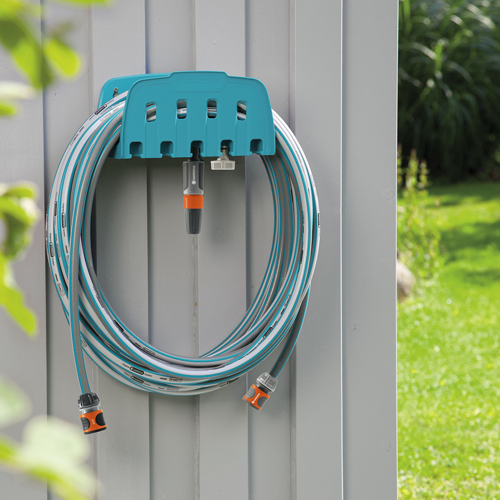 Держатель настенный Gardena (Гардена) 00241-20.000.00 предназначен для хранения садовых инструментов и поливочных шлангов. Настенный кронштейн - это практичный вариант размещения наконечников, распылителей или дождевателей. Благодаря такому пластиковому кронштейну инструменты будут всегда под рукой. Кронштейн для шлангов Gardena - компактное и полезное приспособление, которое облегчает полив. Характеристики: Максимальная емкость: 13 мм (1/2') 35 м. Максимальная емкость: 15 мм (5/8') 25 м. Максимальная емкость: 19 мм (3/4') 20 м.