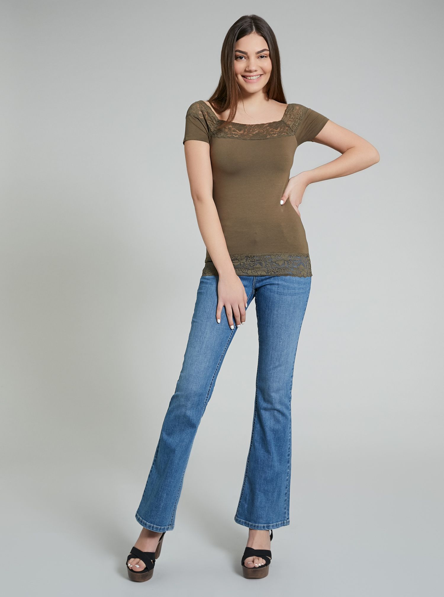 Футболка Piazza Italia 25995 кружевная, оливковая