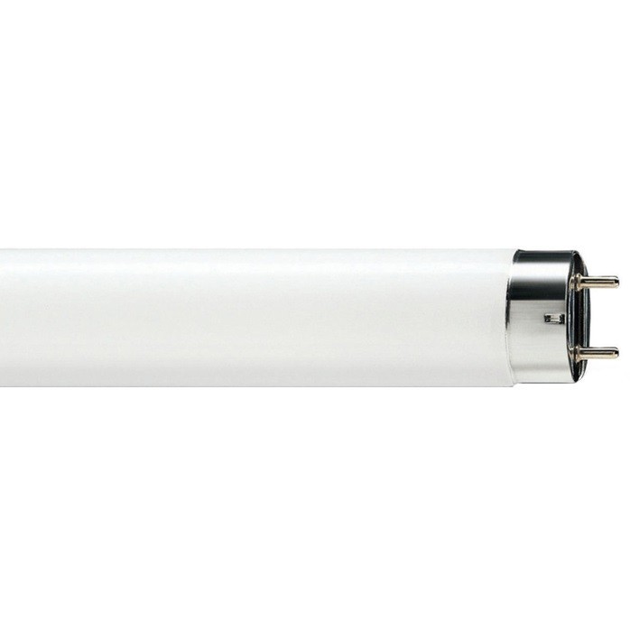 Лампы Philips серии TL-D Standard Colors (диаметр трубки 26 мм) - лампы умеренной эффективности и цветопередачи. Тип цоколя лампы - G13. Средний срок эксплуатации лампы составляет около 10 тысяч часов.Применяются там, где не выдвигаются высокие требования к цветопередаче. Это универсальные лампы, которые подходят для различных светильников и предназначены для освещения помещений общего пользования. Люминесцентная лампа широко применяют для освещения общественных зданий: больниц, офисов, школ и т. д. Такую лампочку более целесообразно применять в общем освещении, прежде всего больших помещений, они позволяют улучшать освещение и при этом снижают потребление электроэнергии на 50-83 %. Лампы данного типа используются и в освещении рабочего места, подсветке прилавков магазинов, кухонных гарнитуров, гардеробных комнат и шкафов, фасадов и в световой рекламе. Благодаря матовой поверхности колбы осуществляется мягкое распространение света. Лампы данного типа заполнены парами ртути и смесью инертных газов. Во время работы ламп дневного света между двумя электродами, которые расположены в противоположных концах корпуса, появляется тлеющий низкотемпературный разряд. Ток, проходящий через газовую среду, приводит к возникновению ультрафиолетового излучения, которое является невидимым для человеческого глаза. Световая отдача и срок службы в несколько раз больше, чем у ламп с нитью накаливания того же назначения.