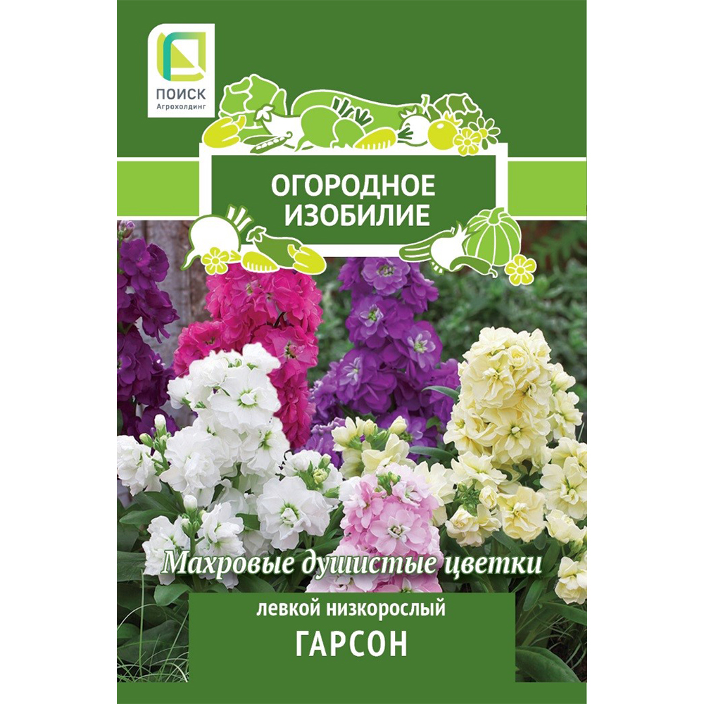 Левкой низкорослый Гарсон - низкорослая смесь с махровыми и полумахровыми соцветиями. Растение высотой 30 см. Крупные цветки собраны в компактные колосовидные соцветия. Листья ланцетные, серовато-зеленые. Семена для рассады высеваются в марте, окрепшие сеянцы пересаживаются на постоянное место в конце мая - начале июня. Цветение обильное с июня до конца августа. Интересный вариант для контейнерной культуры, а также великолепно выглядит на клумбах и в бордюрах.