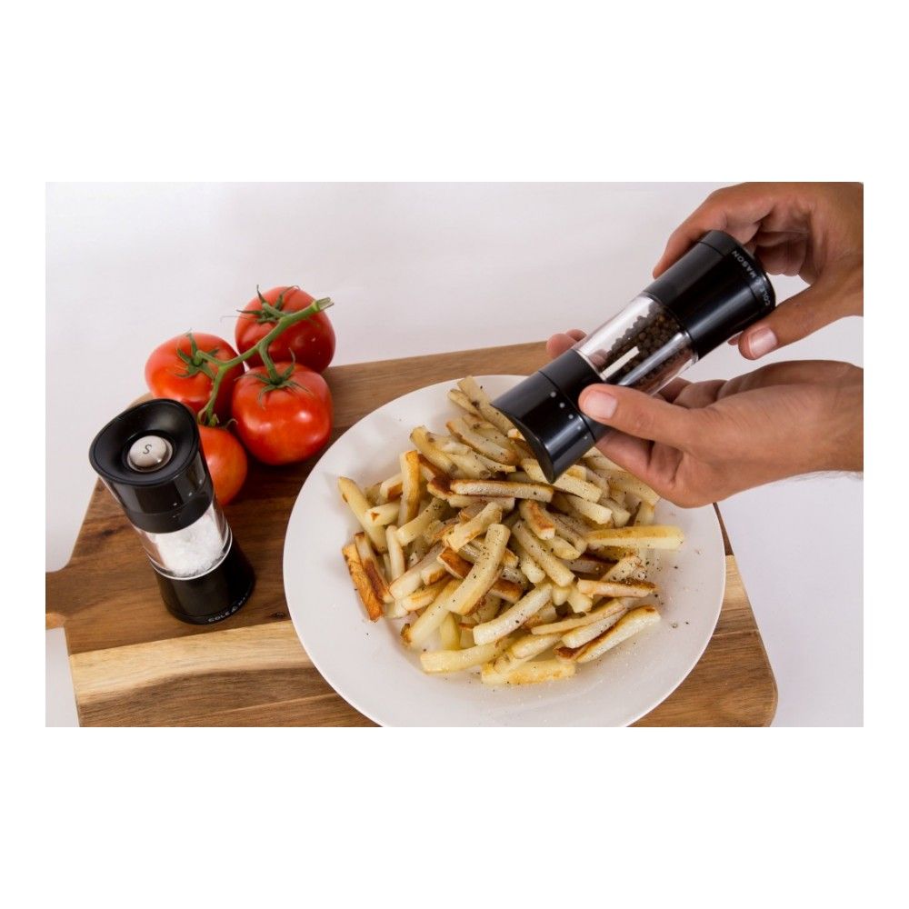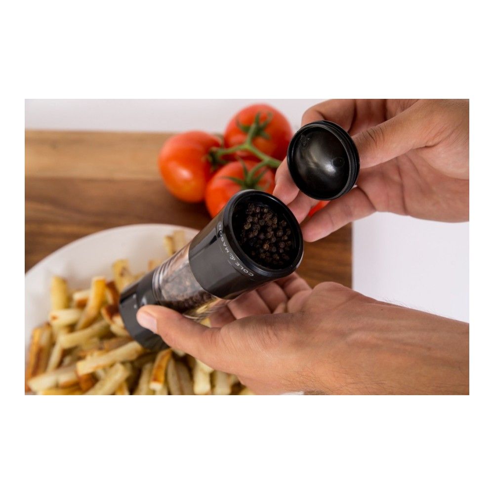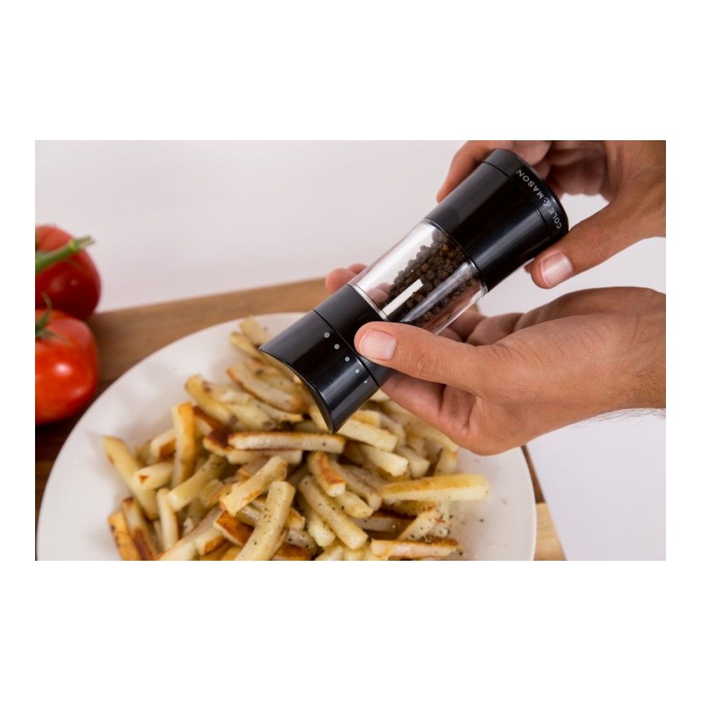Эта мельница подходит не только для того, чтобы молоть перец, но и для того, чтобы измельчать более деликатные приправы: сушеные базилик, петрушку, или укроп. Механизм имеет пожизненную гарантию – настолько английская компания COLE & MASON уверена в его качестве. Действительно, ножи мельницы заточены превосходно и не тупятся годами, с легкостью справляясь как с помолом твердой соли, так и мягких, нежных трав. Главная особенность данной модели в том, что измельчаемый перец высыпается из верхней части. Это позволяет содержать кухню в чистоте, потому что перец не остаётся в нижней части как обычно бывает. Помол регулируется верхней частью мельницы. Достаточно повернуть регулятор на нужный показатель.