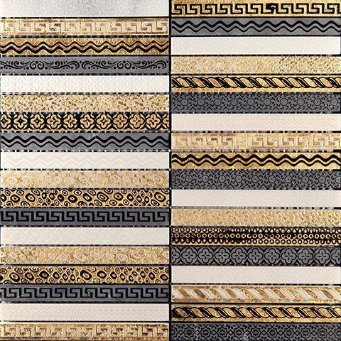 Итальянская компания Skalini представляет уникальное творение природы и рук человека – каменную мозаику безупречного качества и потрясающей красоты. При производстве продукции традиционные способы обработки камня успешно сочетаются с последними технологическими достижениями. Результатом является эксклюзивный отделочный материал, изготовленный из натурального мрамора. Мозаика из мрамора уникальна и неповторима. Ведь натуральный камень представляет собой материал, обладающий исключительной уникальностью цвета, рисунка и текстуры поверхности. Мраморная мозаика завораживает своей яркой фактурой и насыщенными переливами, подчеркивающими благородство и роскошь интерьера. При этом мрамор гармонично вписывается в любое пространство и помещение абсолютно различного назначения. А его природная красота, проявляющаяся характерным рисунком и различными цветовыми оттенками, поможет грамотно расставить акценты в помещении или зонировать пространство. Мозаика из мрамора Skalini Golden Line GLN-1 станет отличным решением для яркого эксклюзивного интерьера. По сравнению со стандартной мозаикой она имеет довольно оригинальный внешний вид. Полотно составлено чипами продолговатой прямоугольной формы, которые украшены орнаментом. Сочетание элементов различных оттенков с натуральной фактурой мрамора и металлизированной поверхностью образует яркий и стильный отделочный материал. Покрытие неприхотливо в уходе, а укладка осуществляется легко и быстро благодаря тому, что отдельные элементы собраны на сетке размером 300х300 мм. Мраморная мозаика довольно практична, ведь мрамор является прочным и долговечным материалом. Недаром мрамор применяли при отделке царских дворцов. Такая мозаика при правильном монтаже и грамотном использовании прослужит владельцам не один десяток лет и абсолютно не потеряет свой привлекательный внешний вид. Кроме того, это экологически чистый и безопасный отделочный материал, который не имеет запаха, не выделяет вредных веществ и поддерживает в помещении природный микроклимат. Мозаика Golden Line привнесет в интерьер ощущение роскоши и яркой индивидуальности. Мозаика Skalini Golden Line GLN-1 предназначена для использования в качестве настенного покрытия внутри помещений, в том числе в душевых. Не рекомендуется укладка снаружи помещений, на полу, в паровых комнатах и бассейнах. Преимущества мозаики Skalini Golden Line: Эксклюзивный и роскошный внешний вид отделочного материала. Высокая прочность и долговечность покрытия. Натуральный экологически чистый материал. Простота в уходе, покрытие чистится обычными моющими средствами. Отдельные элементы мозаики собраны в удобного размера фрагменты, что существенно ускоряет процесс укладки.