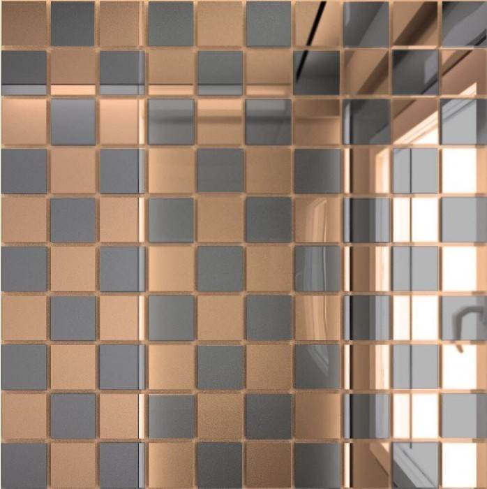 Мозаика зеркальная ДСТ Классика плюс Б90Г10 бронза графит 300х300 мм – современная и ультрамодная технология декорирования интерьеров. Она дает колоссальные возможности для неповторимого оформления помещений, открывая новые просторы в декоре, а так же подчеркивает Ваше непревзойденное чувство стиля. Линейка «Классика» представлена листами с чипами (2,5х2,5 см) квадратной формы. Она сделана в технике «микс» с содержанием контрастных чипов в пропорции 90х10%. Это превосходный декоративный материал для отделки. Зеркальная мозаика состоит из маленьких кусочков зеркала, что удобно при укладке полукруглых и неровных стен. Различные элементы, такие как перегородки или колонны, можно облицовывать как не большими частями, так и целиком. Зеркальная мозаика в интерьере подходит для украшения жилых и общественных помещений, так например, зеркальная мозаика на кухне придаст шарма и утонченности, а отделанный ею фартук будет эффектно смотреться в сочетании с хромированными элементами и отражать яркие детали. Развлекательным заведениям отделка мозаикой придаст эксклюзива. Она имеет свойства зрительно увеличивать или уменьшать пространство, скрывать некрасиво выступающие места, позволят декорировать сложные и не ровные участки, наполняет апартаменты светом. Особенности зеркальной мозаики: насыщает пространство помещения светом и яркостью; позволяет декорировать сложные участки с изъянами и неровностями; скрывает некрасиво выступающие участки и ниши; визуально расширяет или, наоборот, сужает пространство; создаёт необычную пространственную иллюзорность; формирует износостойкую поверхность. Преимущества зеркальной мозайки ДСТ: Способна прослужить длительное время. Не горит. Не вступает в реакцию с щелочами, кислотами. Формирует износостойкую поверхность. Подходит практически для всех стилей интерьера. Стойкость к влаге.