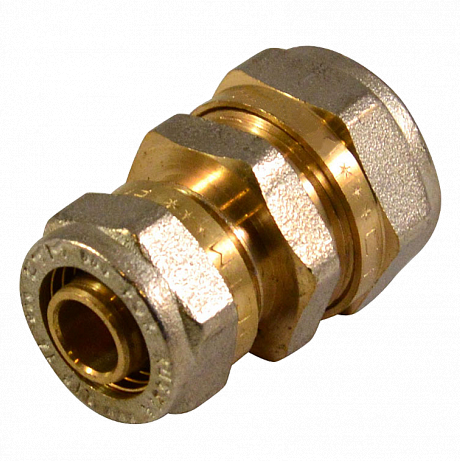 Муфта переходная CTM CRC02016 20х16 мм - обжимной фитинг для соединения металлопластиковой (металлополимерной) трубы в системах отопления и водоснабжения. Изготовлена методом горячей штамповки из латуни с последующей термической обработкой и никелированием для предотвращения появления коррозии, механического износа и вредного воздействия агрессивных жидкостей и воздушно-газовых сред. Все фитинги, предназначенные для соединения труб, проходят строгий многоэтапный контроль качества и подвергаются испытаниям в лабораториях. Материалы: корпус, накидные гайки и обжимные кольца тройника изготовлены из латуни CW617N; уплотнительное кольцо из нетоксичной резины (EPDM); диэлектрическая прокладка из Teflon® (PTFE). накидная гайка – усиленная. Преимущества обжимных фитингов СТМ: выраженная устойчивость к поражению коррозией, что очень важно для обжимных элементов, постоянно контактирующих с водой; высокая надежность соединений труб в составе инженерных коммуникаций; геометрическая точность; продолжительный срок эксплуатации – обжимные фитинги прослужат не меньше, чем металлопластиковые трубы; укомплектованность уплотнительными кольцами из полимерного материала, которые делают инженерную систему электрически нейтральной; возможность монтажа за 1 минуту на любом участке пролегания трубы; в качестве инструмента для работы с фитингами для металлопластиковых труб используются стандартные накидные ключи.