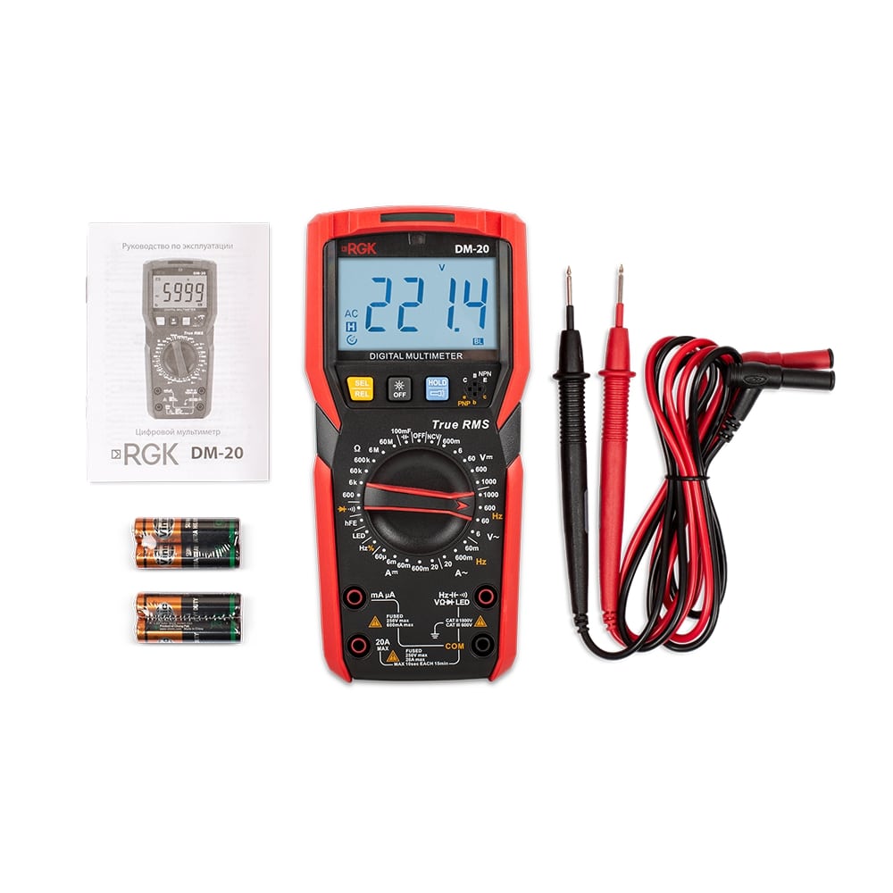 Цифровой мультиметр RGK DM-20 с поверкой - это надежный и безопасный прибор для измерения целого ряда параметров электросетей и оборудования, прозвонки цепей, тестирования различных компонентов электроприборов. Благодаря широкому арсеналу функций и измерительных режимов эта портативная модель может использоваться как в быту, так и в таких профессиональных отраслях, как строительство, сервисное обслуживание и др.