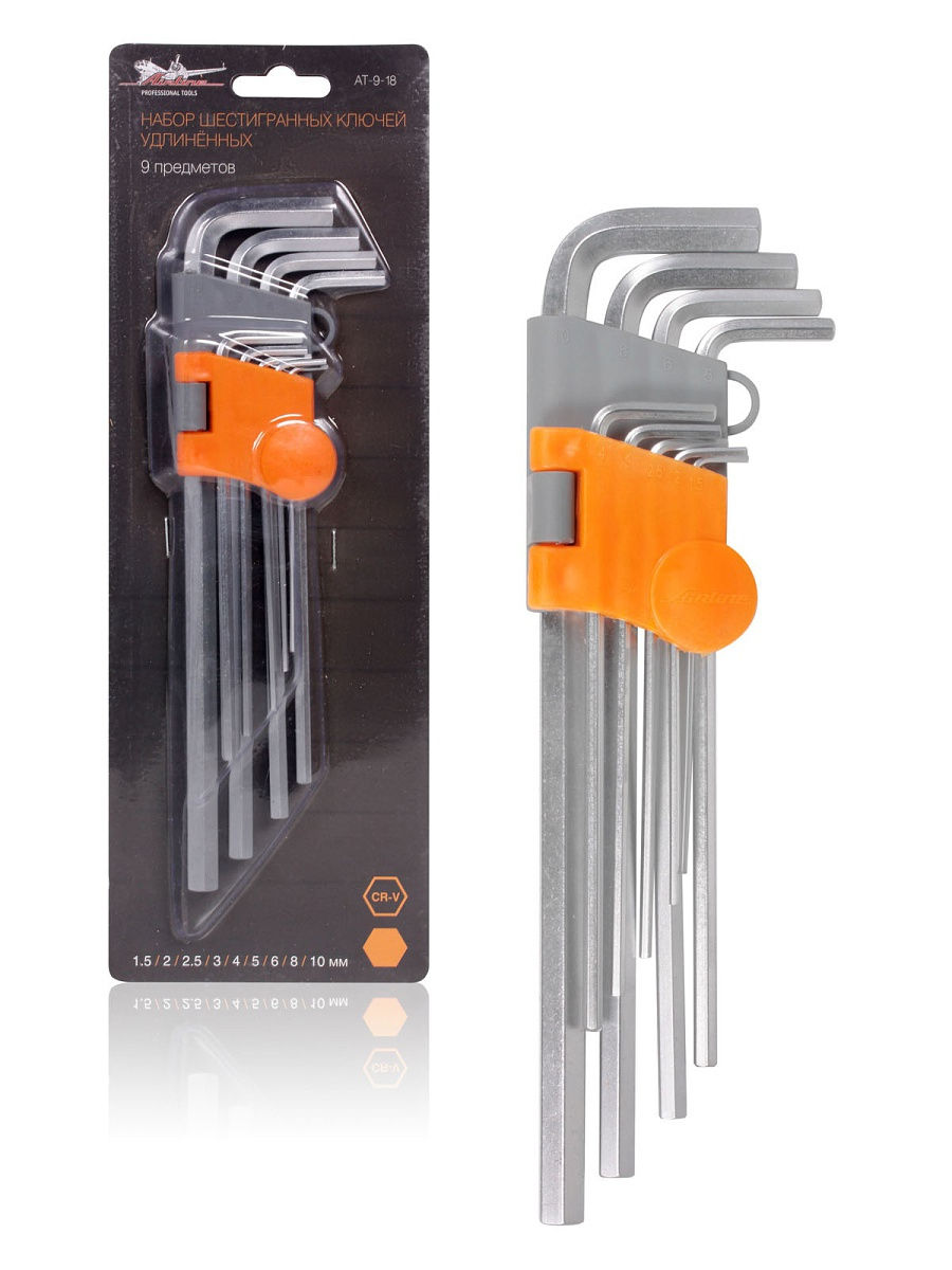 Набор ключей Airline шестигранных удлинённых инбус, подвес AT-9-18 9 шт 1.5,2,2.5,3,4,5,6,8,10 мм