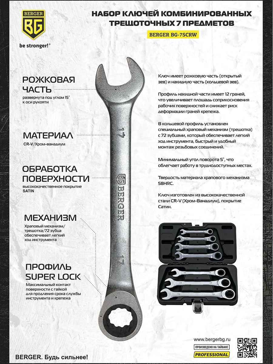 Набор ключей Berger трещоточных комбинированных трещоточных 7 шт BG-7SCRW