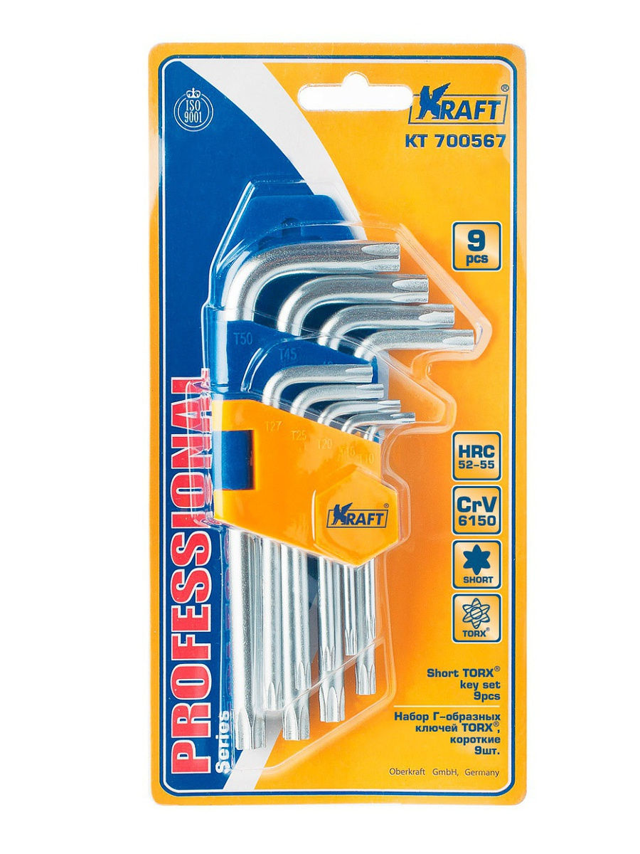 Набор ключей KRAFT торцевых Г-образных, torx, короткие, 9 шт