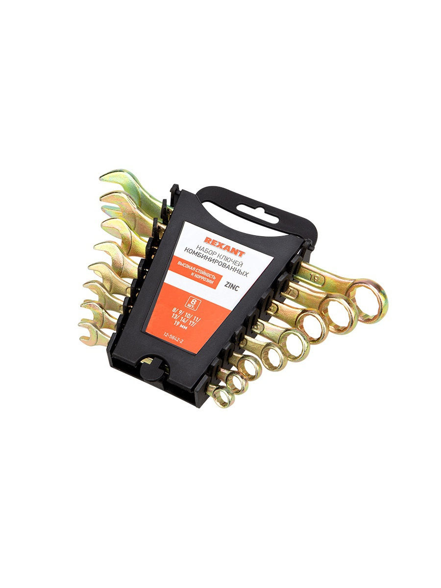 Набор ключей Rexant гаечных комбинированных с желтым цинком, 8, 9, 10, 11, 13, 14, 17, 19 мм