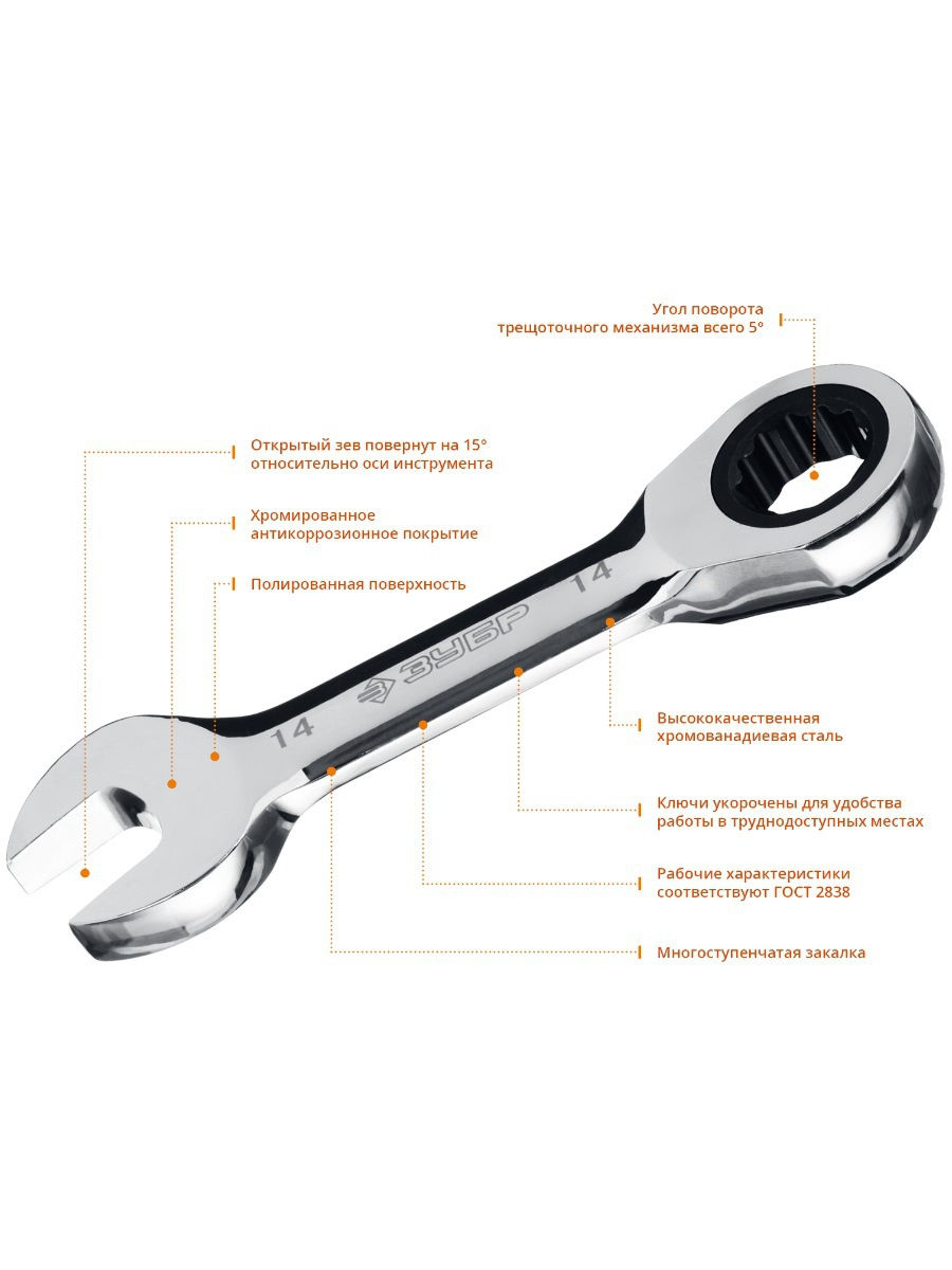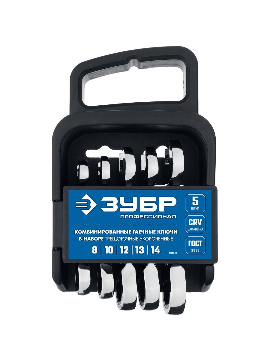 Набор ключей ЗУБР гаечных комбинированных трещоточных, хромированный, 5 шт, 8-14 мм, 27103-H5