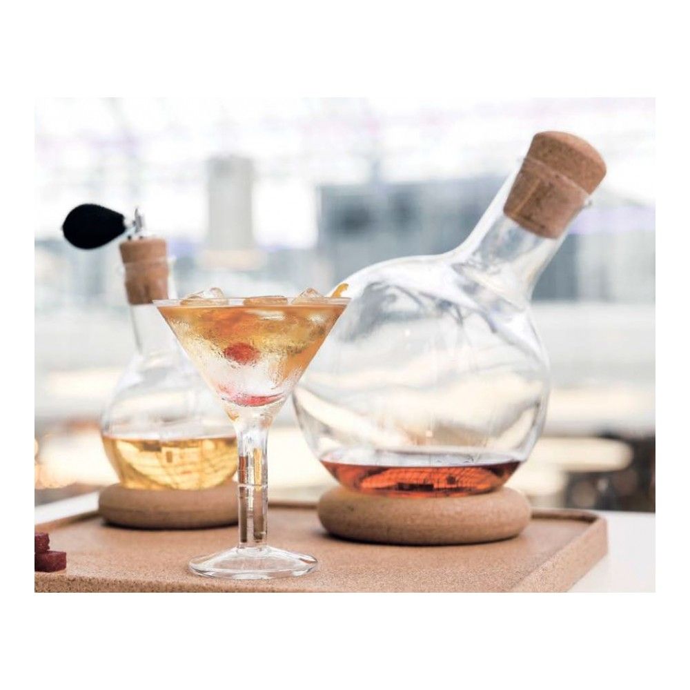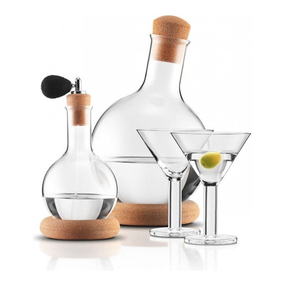 Стильный набор для домашнего бара состоит из дуэта декантеров и двух бокалов. Пробковые подставки дополняют набор, они надежно фиксируют изящные декантеры. Они, как и бокалы, сделаны из боросиликатного стекла, которое отличается высокой прочностью при небольшой толщине стенок. Данный набор предназначен, в первую очередь, для водки и мартини — компонентов любимого коктейля Джеймса Бонда. Однако другие напитки будут в этих декантерах также уместны. Такой набор, безусловно, станет украшением домашнего бара. Современный стиль швейцарского бренда BODUM будет уместен в любом интерьере. Набор станет замечательным подарком для ценителей коктейльной культуры.