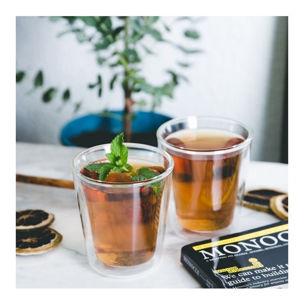 Набор Canteen – это два красивых стеклянных термобокала объёмом 200 мл каждый. Тепло напитка в них сохраняется долго благодаря двуслойным стенкам и прослойке воздуха между ними. В этих бокалах не только горячие напитки сохраняют свою температуру, но и холодные, например кофе фраппе, в жаркий день, не нагреются. В соответствии с технологией марки BODUM каждый такой бокал сделан вручную из тонкого и прочного боросиликатного стекла.