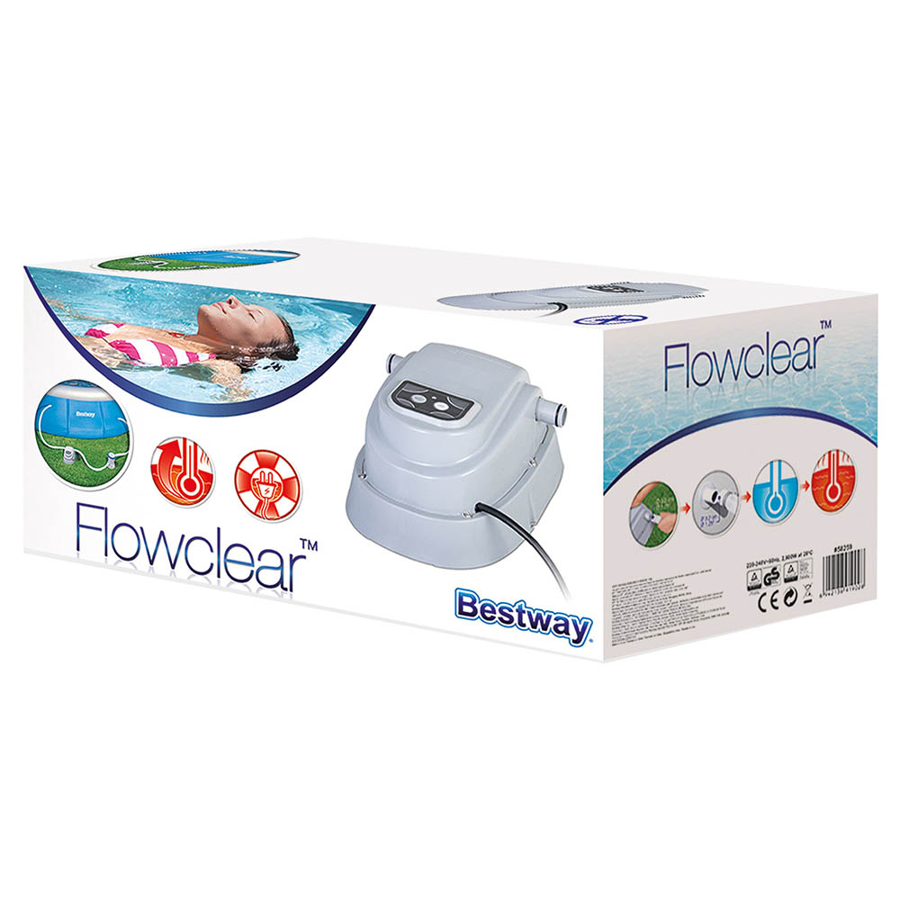 Проточный нагреватель воды Bestway (Бествей) 58259 используется для нагрева воды в сборных, каркасных и надувных бассейнах объемом от 1520 до 18930 литров. Подключается к бассейну вместе c фильтрующим насосом как часть фильтрационного цикла, прогоняет воду через себя делая ее приятной температуры. Питание осуществляется отдельно от электросети. Используется данное изделие при температуре воды не ниже 16 градусов и не выше 35 градусов. Технические характеристики: Мощность: 2,8 кВт. Скорость нагрева: 0,5-1,5 градусов в час. Размер установки: 30х50 см. Важно: Для работы нагревателя необходима циркуляция воды, без фильтр-насоса использование не допускается! Может совмещаться с фильтрами пропускной способностью до 3785 л/ч.