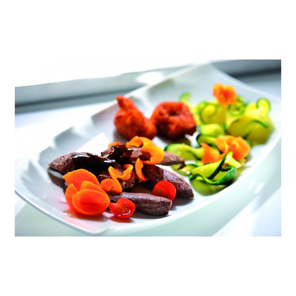 Нож подходит для вырезания тонких спиралей из твердых овощей, таких как морковь, кабачок, редька и т.п., а также для креативных блюд и разнообразных украшений.