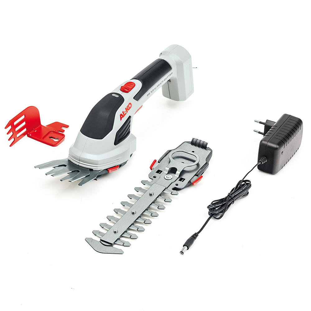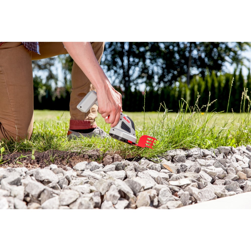 Аккумуляторные ножницы AL-KO (АЛ-КО) GS 113371 для подравнивания кромок газона, придания формы кустарникам, живой изгороди, самшитовым деревьям. Беспроводное устройство позволяет работать в труднодоступных и удаленных от электросети местах. Преимущества и свойства: Легкие и удобные. Принцип резки - противоходные безопасные ножи, с алмазной заточкой - быстрое и эффективное резание. В комплекте 2 насадки для травы и кустарников. Смена ножей производится легко, без использования специальных инструментов. Аккумулятор без эффекта запоминания можно подзарядить в любое время. Заряд батареи обеспечивает непрерывную работу на протяжении 50 минут. Предусмотрена защита от случайного запуска. Прорезиненная ручка приятна на ощупь и удобна в работе. Отсутствие токсичных выхлопов.