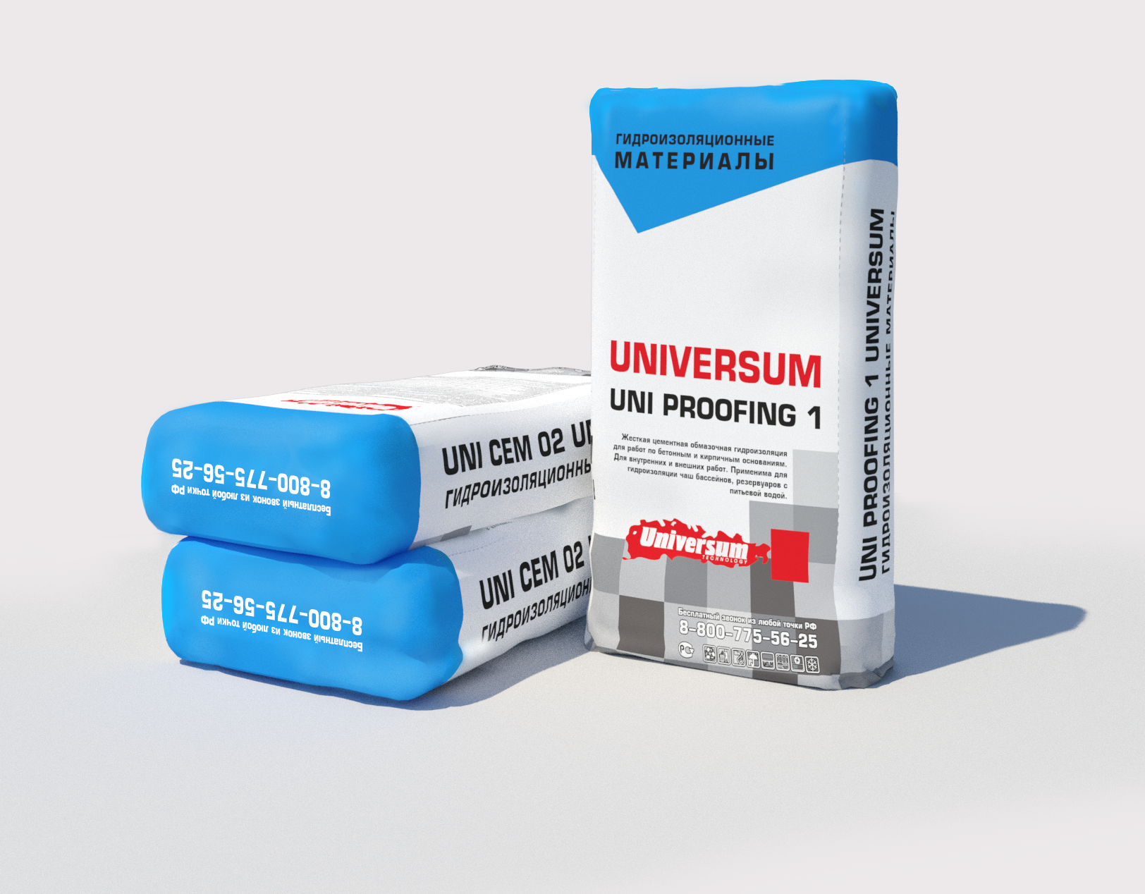 Обмазочная гидроизоляция UNI PROOFING-1 UNIVERSUM однокомпонентная жесткая, 25 кг