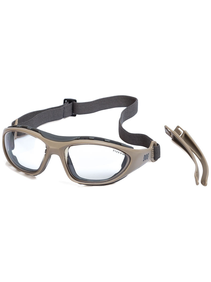 Открытые очки с возможностью замены дужек на эластичную ленту. Мягкий съемный обтюратор. Оптический класс №1. Линзы из высококачественного поликарбоната защищают от ультрафиолетового излучения. Степень затемнения 2-1,2. Покрытие от царапин и запотевания. Для защиты глаз спереди и с боков от высокоскоростных летящих частиц с низкоэнергетическим ударом в производственных помещениях и на открытых площадках. Состав: пластик 80%, поликарбонат 20%
