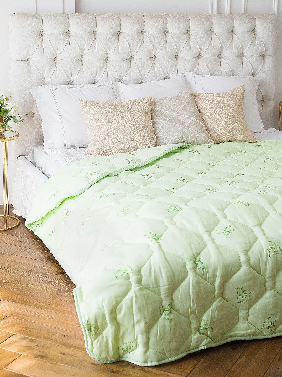 Волокна на основе бамбука - уникальная инновация в производстве домашнего текстиля. Преимущества изделий с наполнителем \"Бамбук\": прекрасные вентилирующие свойства (позволяют коже \"дышать\"), отличное влагопоглощение (оптимальный уровень влажности во время сна), обладают естественными антибактериальными свойствами, подходят людям, страдающим аллергией и астмой, сохраняют свои первоначальные свойства и форму после многократных стирок. Изделия этой уникальной коллекции создают комфортные условия для спокойного и здорового сна, помогают восстановить силы. Наполнитель: бамбуковое волокно, силиконизированное волокно (плотность 300 г/м). Ткань чехла: 100%полиэстер. Упаковка - чемодан ПВХ. Состав: полиэстер 100%