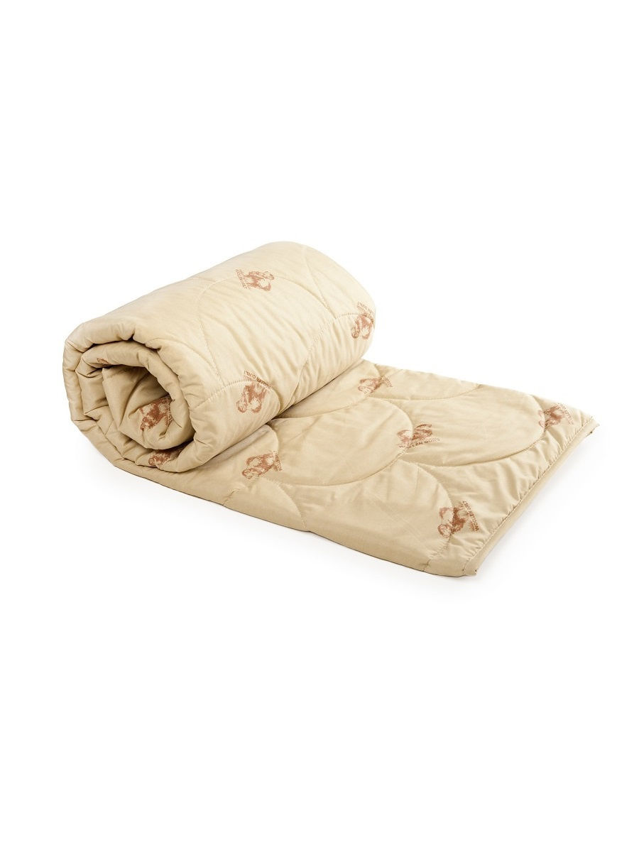 Одеяло с натуральной верблюжьей шерстью, в чехле из полиэстерного тика с серебристым напылением. Мягкое и тёплое. Используются материалы высокого качества. Тик из 100 % полиэстера - очень плотный и одновременно мягкий и легкий материал, обладает массой достоинств: хорошо пропускает воздух; не деформируется при стирке; обладает водоотталкивающими свойствами; прочен на разрыв, тематический дизайн ткани - верблюд, цветовая гамма в стиле наполнителя. Наполнитель верблюжий шерстипласт 150 гр./кв.м. - 30% верблюжья шерсть + 70% первичное синтетическое волокно. Наполнитель обладает целебными свойствами, благодаря полой структуре своих волосков легкий и отлично проводит воздух, не накапливает статическое электричество, сохраняет тепло и при этом гипоаллергенен. Стежка на многоигольной машине надёжно фиксирует наполнитель. Состав: полиэфир 70%, верблюжья шерсть 30%