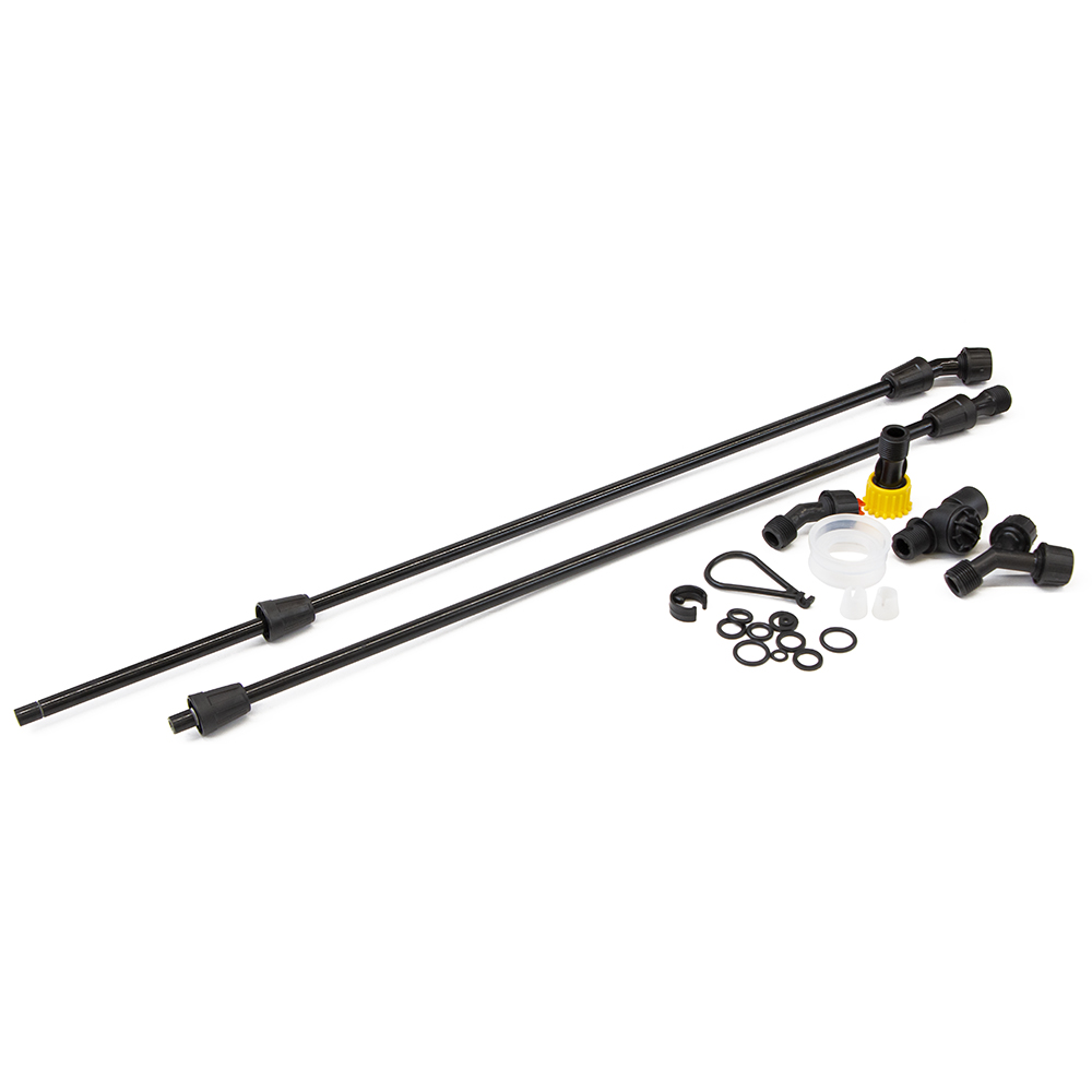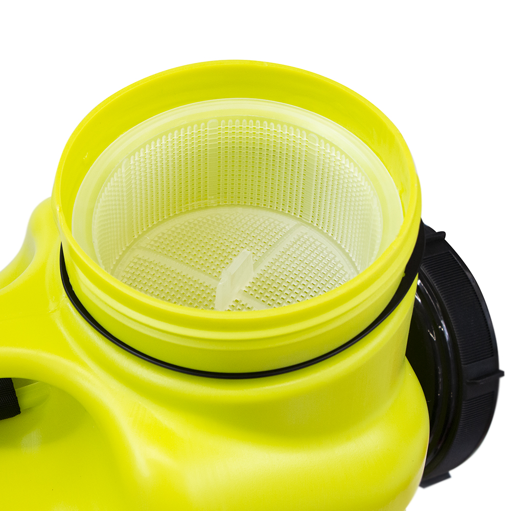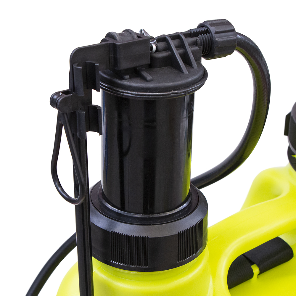 Ранцевый опрыскиватель с 4 сменными насадками, фиксатором для непрерывного опрыскивания и регулируемыми плечевыми ремнями.