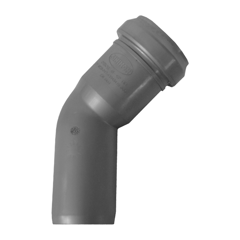 Отвод внутренний d=40мм 45 гр. СИНИКОН. Изготовлен из полипропилена (ПП). Предназначен для использования в системах хозяйственно-бытовой канализации зданий. Выдерживает максимальную температуру постоянных стоков 80° и кратковременных ( в течении 1 минуты) стоков до 95°. Химическая устойчивость фасонных частей и уплотнителей сохраняется для сточных вод со значением рН 2-12. Стойкость к гидрообразивному износу. Низкий коэффициент шероховатости дает возможность использования минимальных уклонов, практически отсутствует зарастание труб. Двухлепестковое уплотнение из SBR резины с пластмассовым (ПП) распорным кольцом. Способ соединения – раструбное. Простота и удобство монтажа без специальных инструментов и приспособлений. Срок службы не менее 50 лет.