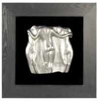 Настенное панно из композитного материала в раме из шпонированного МДФ под стеклом. Цвет рамы - черный с текстурой дерева, цвет панно - серебристый металлик. Подложка выполнена из фанеры, обтянутой черным холстом.