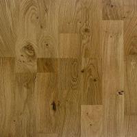Трехполосная доска из дуба в стиле Кантри, покрыта лаком. Допускается редкая заболонь, сердцевинные лучи, темные полосы, сросшиеся и зашпатлеванные сучки.