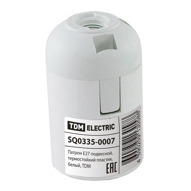Патрон TDM electric Е27, термостойкий пластик, подвесной, разборный, белый, 4А, 230В,