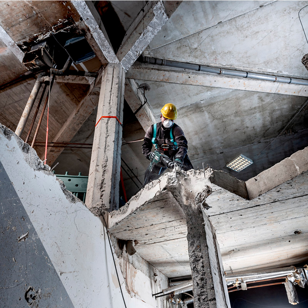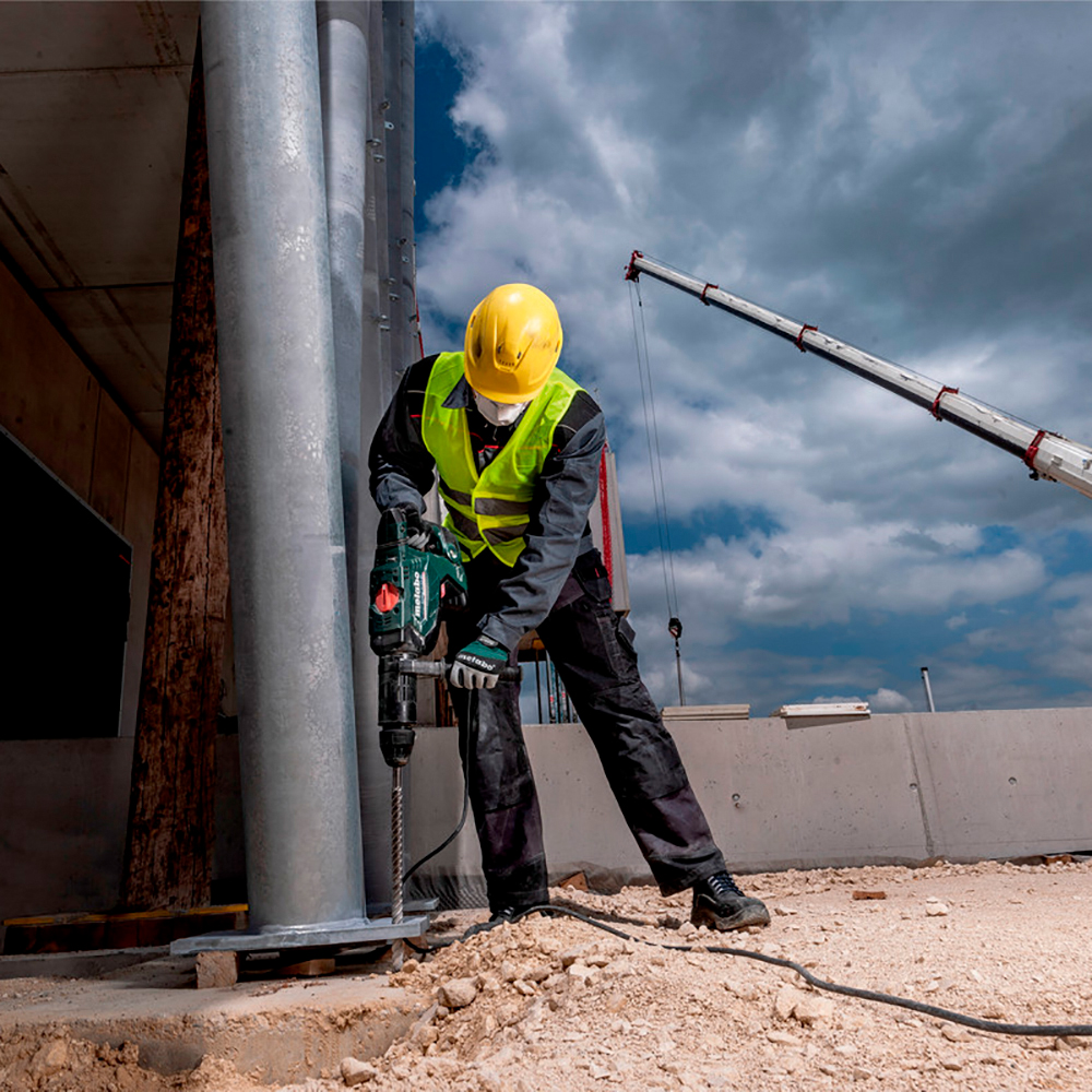 Профессиональный перфоратор с бесщеточным двигателем и энергией удара 18,8 Дж предназначен для сверления отверстий в бетоне, а также для использования в качестве отбойного молотка.