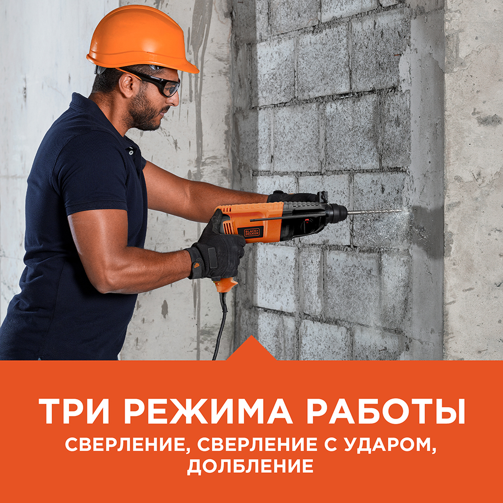 Перфоратор Black&Decker BDHR26KR-RU оснащен тремя режимами работы: сверление, сверление с ударом, долбление. Преимущества и особенности: Мощный двигатель обеспечивает высокую производительность работ. Дополнительная рукоятка фиксируется под нужным углом. Для установки нужной глубины сверления в комплекте предусмотрен ограничитель глубины. Скорость вращения регулируется посредством силы нажатия на клавишу пуска. Патрон SDS-Plus для быстрой замены оснастки. Функция реверса для быстрого и легкого извлечения застрявшего бура. Режим поворота зубила для удобного удержания перфоратора при штроблении. Антискользящая накладка на основной рукоятке для надежного хвата. Длина кабеля (м): 3.