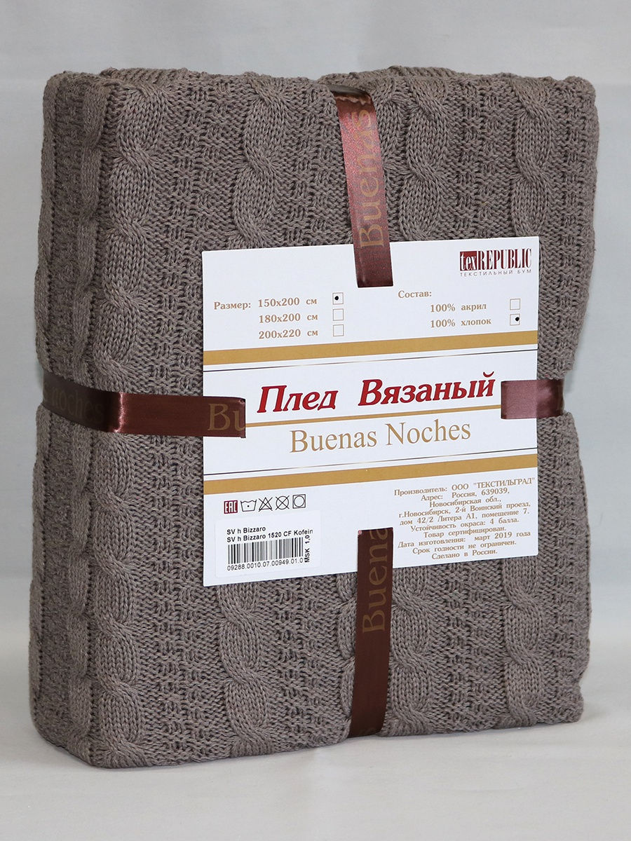 Вязаные хлопковые пледы Bizzaro торговой марки Buenas Noches - самые плотные из всей линейки вязаных пледов, мягкие и теплые, они гипоаллергенны и и приятны на ощупь. Пледы производятся из высококачественного хлопка и имеют крупный выразительный орнаментальный рисунок в виде традиционных косичек, комфортный и всегда модный он станет стильным дополнением любых интерьеров, а также станет отличным подарком по любому случаю. Рекомендации по уходу: ручная стирка при невысокой температуре до 40 градусов с мягкими моющими средствами или машинная стирка и отжим при деликатном режиме. Рекомендуется использовать кондиционер для белья при полоскании и сушить в горизонтальном положении. Упаковка - атласная лента. Состав: хлопок 100%