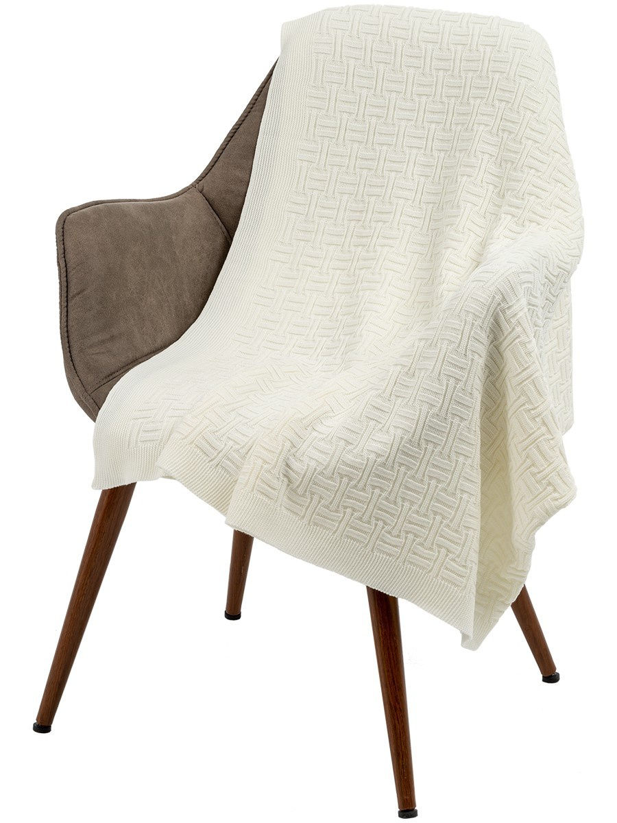 Двусторонний плед фактурной вязки. Благодаря рельефному узору плед мягко и легко драпируется. Состав: акрил 100%