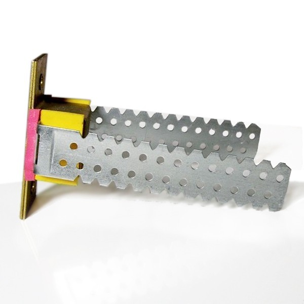 Виброфлекс-К15 – это виброизолирующий потолочный подвес, предназначенный для использования в подвесных потолочных конструкциях из ГВЛ и ГКЛ на металлическом каркасе. Благодаря использованию специализированного материала Sylodin в качестве виброизолирующего элемента, существенно сокращается прохождение звуковых вибраций на фронтальную поверхность звукоизолирующей конструкции. Таким образом, дополнительная звукоизоляция системы существенно возрастает. Крепление металлического профиля каркасных потолочных звукоизолирующих конструкций к перекрытию осуществляется при помощи подвеса Виброфлекс К-15. Подвес представляет собой скобу с перфорированными полками, соединённую с основанием через виброизолирующие вставки из материала Sylodyn. Конструкция изделия выполнена таким образом, что сила прижатия к несущей поверхности не влияет на его жёсткость. Таким образом, его виброизолирующие свойства остаются стабильными и снижение уровня звуковых колебаний достигает 20 дБ. Подвес Виброфлекс-К15 монтируется непосредственно к перекрытию через два отверстия с помощью металлических анкер-гвоздей диаметром 6 мм. Грузоподъёмность одного подвеса составляет 15 кг. Внимание: изделие предназначено только для потолочных конструкций и не рекомендуется для устройства облицовок стен. Отличительные особенности Виброфлекс-К15: Анодированное покрытие силовых элементов. Показатели звукоизоляции до 20 дБ. Срок службы свыше 30 лет. На графике приведены результаты измерений звукоизоляции железобетонного перекрытия с конструкцией звукоизоляционного подвесного потолка. Измерения проводились для двух вариантов закрепления подвесного потолка к плите перекрытия: 1. С помощью стандартных металлических подвесов (жесткое крепление).2. С помощью виброизолирующих подвесов Виброфлекс-К15.