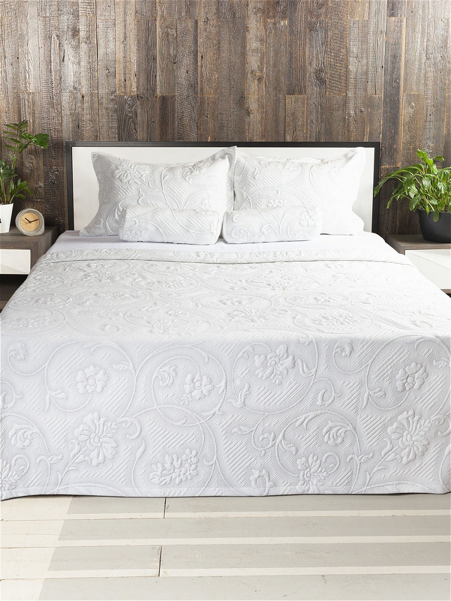 Благородный блеск и разнообразие рисунков, образованных плотным плетением разноцветных нитей, обеспечили изделиям из жаккардового полотна успех и популярность, история которых насчитывает уже несколько столетий. Но время меняет технологии - предлагаемое покрывало на двуспальную кровать изготовлено на основе смеси льняных нитей (8%) и мягких волокон полиэстера. Эту комбинацию материалов производители применяют для изготовления качественного, доступного по цене и самого износостойкого домашнего трикотажа. Благодаря множеству вариантов узора, покупатель имеет возможность подобрать покрывало на спальную кровать в полном соответствии со своим вкусом и особенностями дизайна спальни. Состав: хлопок 8%, полиэстер 92%