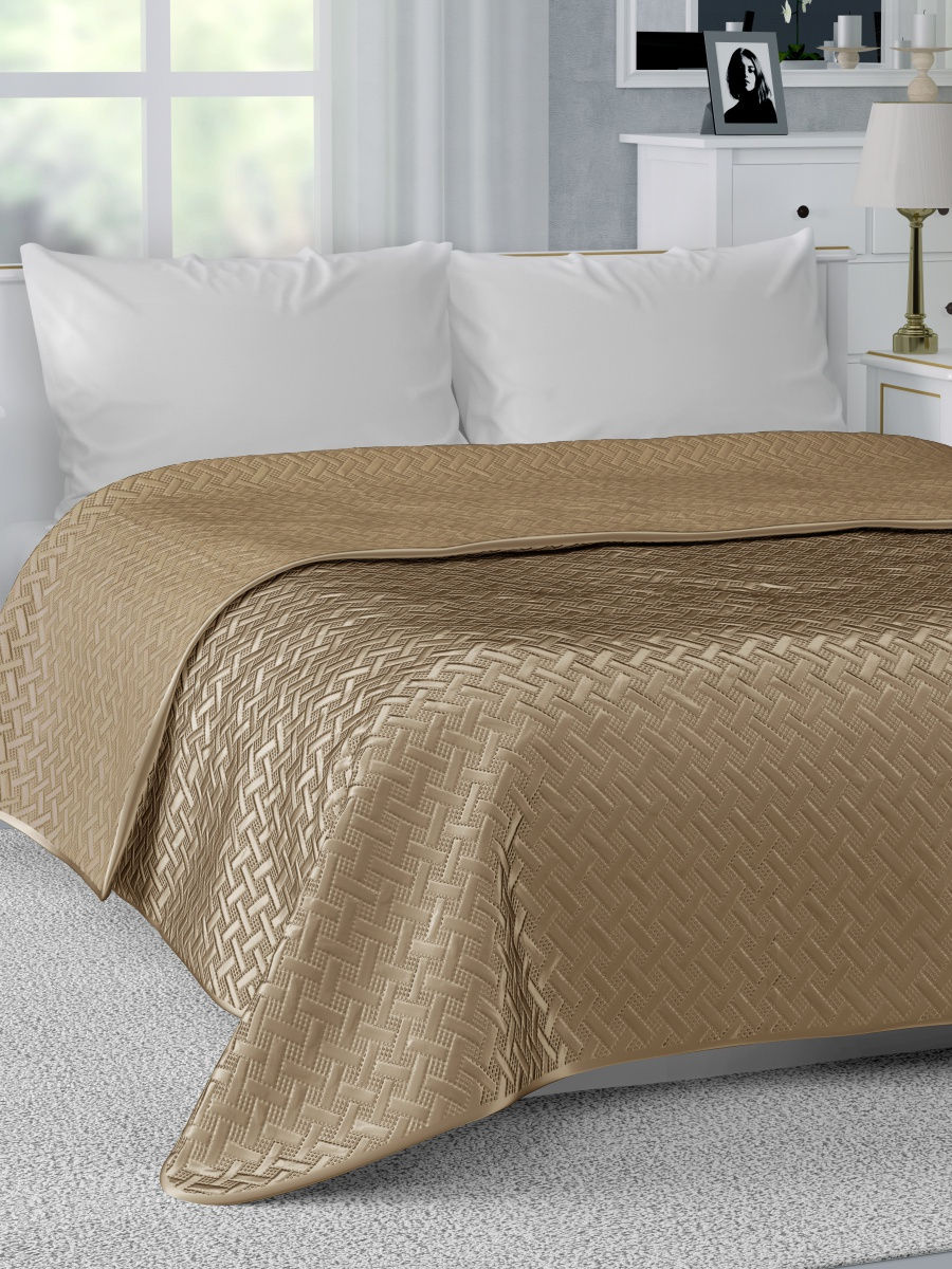 Покрывало изготовлено с применением современной технологии безниточной стёжки. По этой технологии наполнитель соединяется с тканью без применения ниток и надежно прикрепляется к ней. Это делает покрывало несминаемым и износостойким, лёгким, невесомым и воздухопроницаемым. Оно не даёт усадки после многократной стирки, не подвержено миграции волокон. Покрывало двухстороннее: одна сторона покрывала имеет атласную поверхность, а оборотная сторона матовую, бархатистую. Благодаря этому ваша спальня каждый день будет выглядеть по новому. Состав: полиэфир 100%