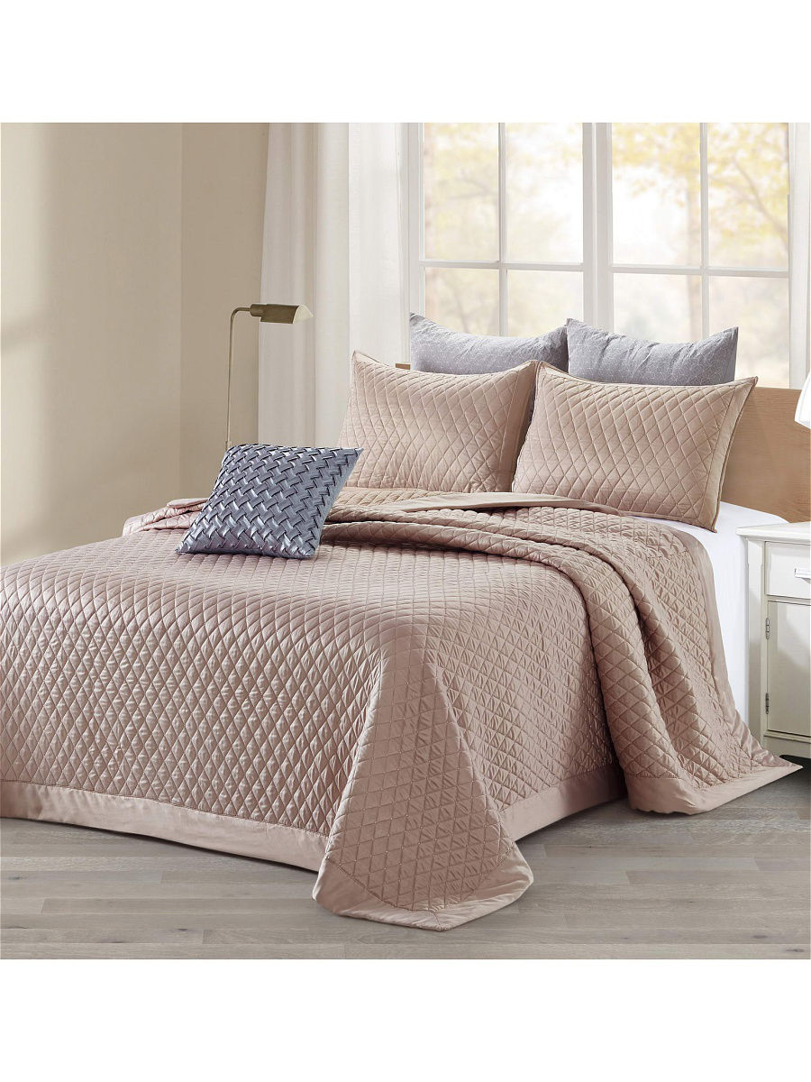 Классическое стеганое покрывало для ценителей лаконичных линий и спокойных пастельных тонов. Строгость форм подчеркнет индивидуальность Вашей спальни и придаст ей гармоничность. В комплектацию входит покрывало и две наволочки. Состав: хлопок 30%, вискоза 70%