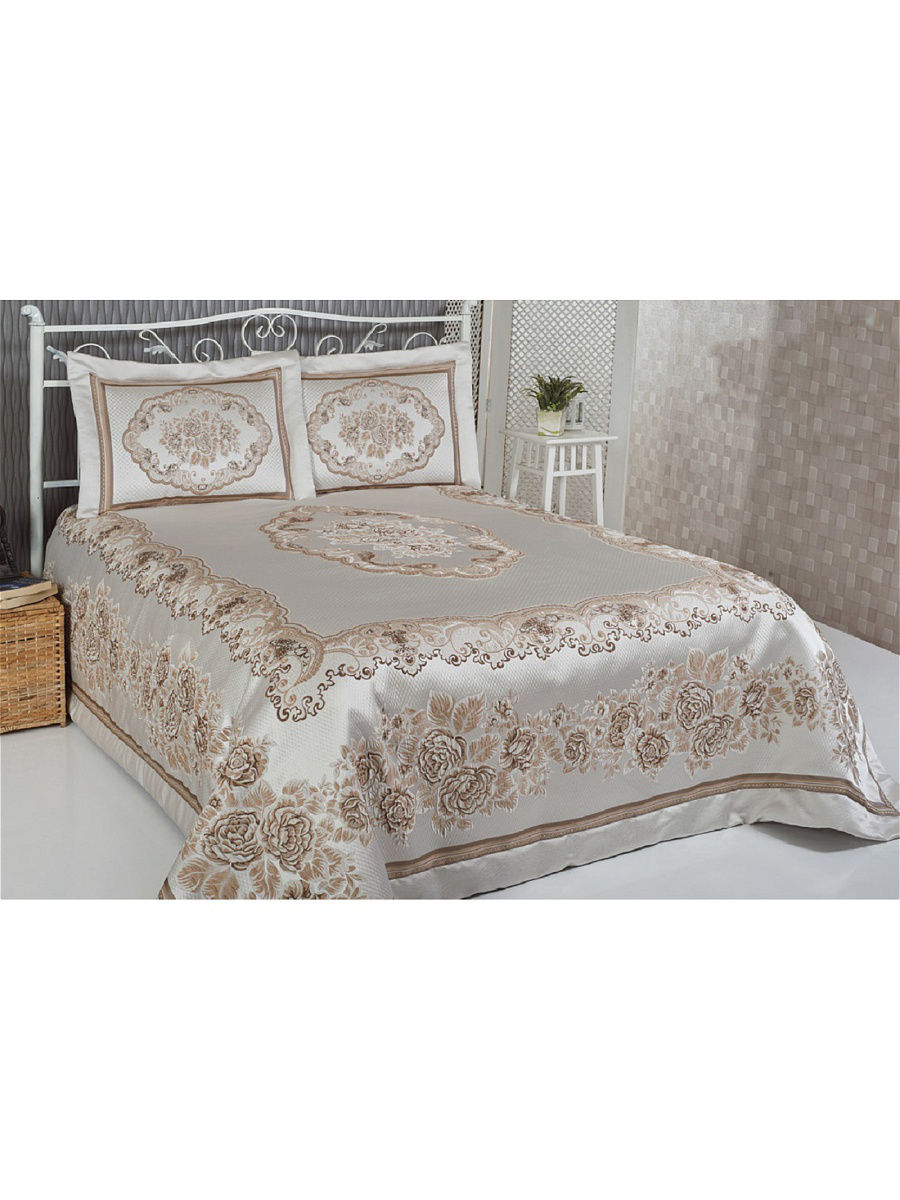 Роскошное покрывало, созданное со вкусом и элегантностью, позволяет сделать спальню самой интимной частью дома. Для того, чтобы спать по-королевски. Вы можете позволить себе изысканный текстиль Sofi De MarkO, созданный из благородных тканей в античном стиле, классицизме, ампир или рококо. Роскошные дизайны, стильная драпировка и торжественность - основные черты нашей продукции. С коллекцией покрывал Sofi De Marko Вы откроете неиссякаемый источник творчества для создания интерьера Вашей мечты! Комплектация: Покрывало 260х260 см; Наволочки 50х70 (2). Состав: полиэстер 100%