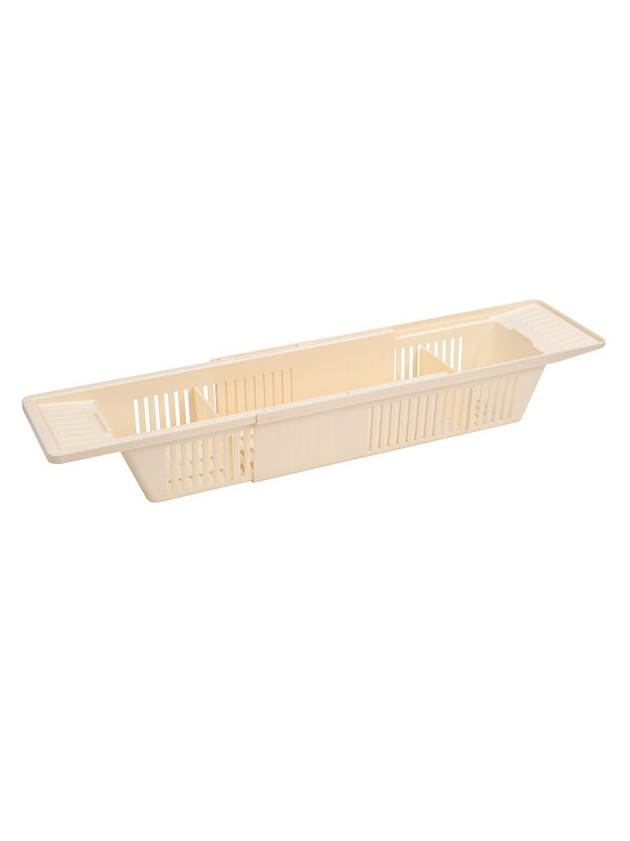 Пластиковая полка на ванну Toys это изящное решение вопроса хранения детских игрушек в ванной и замечательное развлечение для малышей во время купания. Разнообразие расцветок позволит подобрать изделие в тон к шкафчикам и полочкам в помещении. Может также использоваться для косметических средств, мочалок и прочих принадлежностей для мытья. Благодаря раздвижной конструкции, подходит для самых широких ванн. Кладется на бортики и не требует дополнительных крепежных манипуляций. Не оставляет царапин на поверхности. В комплект входит две перегородки, которыми можно разделить полку на три отсека нужных размеров. Множественные отверстия в стенках и нижней части изделия не позволяют воде скапливаться и застаиваться.