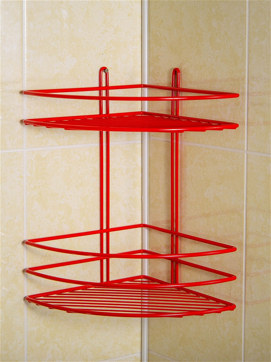 Полка Консулл для ванной комнаты 2 ярусная угловая красная 200х200х300 мм