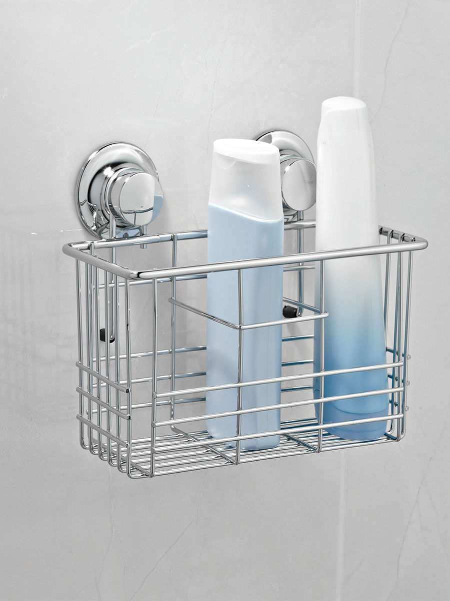Полка одноярусная узкая, 20х11х15Н см, хромированная сталь, крепление: 2 вакуумные присоски d 55 мм, в коробке.