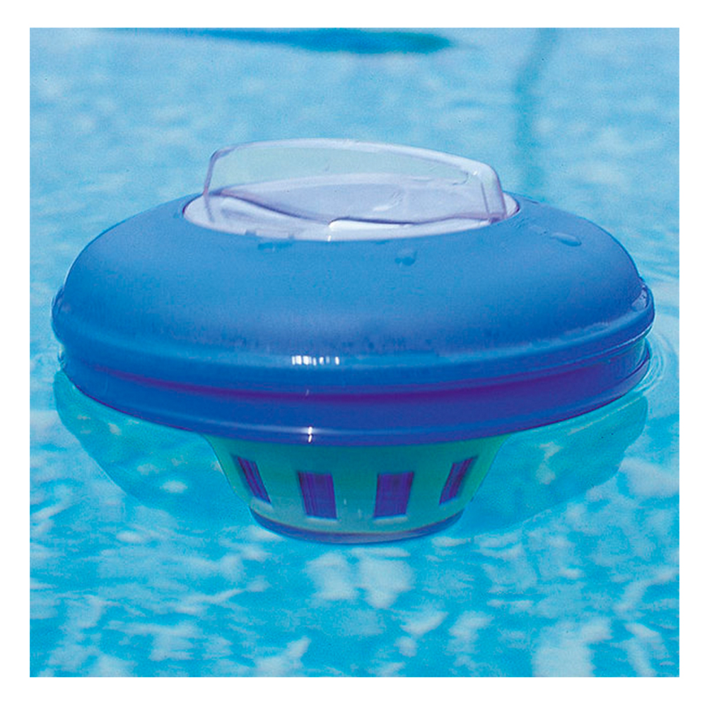Плавающий дозатор химии для бассейна предназначен для использования твердых химических веществ, таких как, например, таблетки Лонгафор. Аксессуар имеет регулируемыми отверстиями для дозирования химических препаратов.