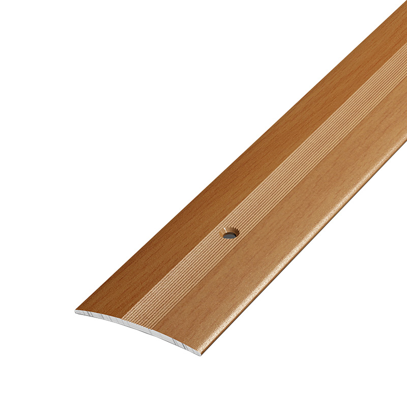 предназначен для декоративной отделки стыков между различными напольными покрытиями. Комплектуется саморезами и дюбелями. Окрашен под структуру дерева.