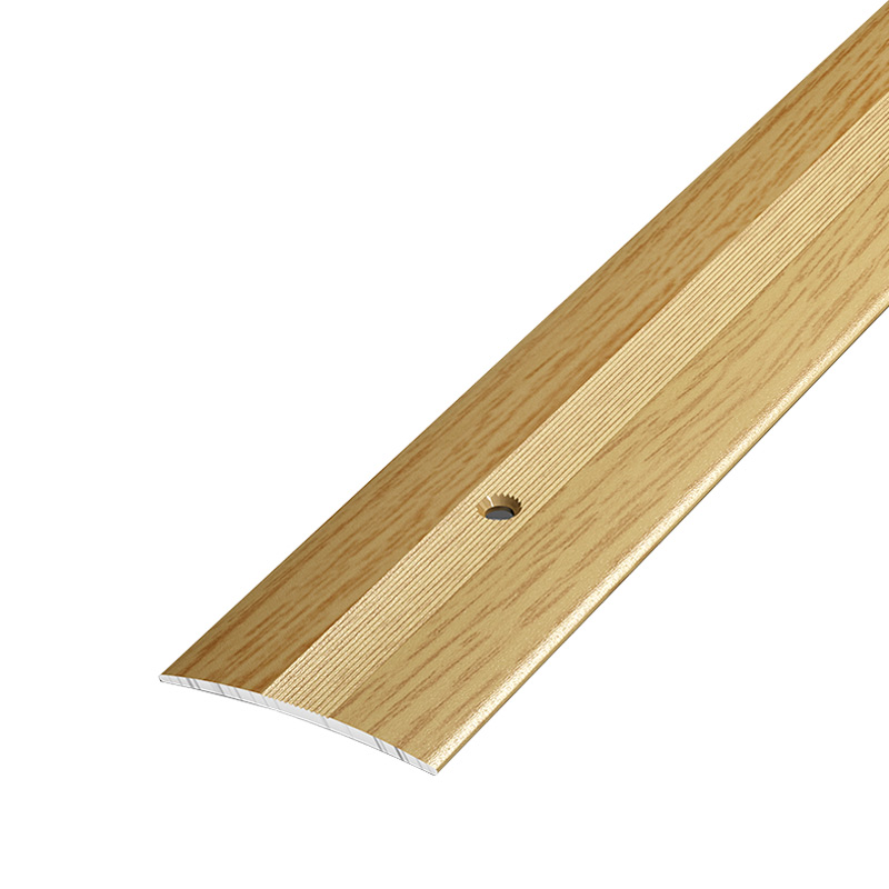 предназначен для декоративной отделки стыков между различными напольными покрытиями. Комплектуется саморезами и дюбелями. Окрашен под структуру дерева.