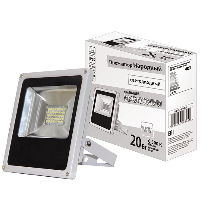 Светодиодный прожектор – осветительный прибор, широко применяемый в современном мире, как для точечного, так и для локального освещения не только в рекламных и промышленных целях, но в бытовом использовании для подсветки фасадов зданий, дачных домов, дорожек, стоянок для автомобиля, улиц и двориков. Обладает повышенной степенью защиты от пыли и влаги (IP65), что позволяет его использовать как внутри, так и снаружи помещения. Срок службы (до 75 000 часов), низкое энергопотребление, а также высокая светоотдача являются основными преимуществами светодиодных прожекторов. Данная модель имеет мощность 10 Вт и белое свечение. Преимущества прожектора светодиодного TDM СДО20-2-Н 20W 6500K IP65 серый: Диапазон рабочих температур от -40 0С до +55 ˚С. Источником света в прожекторах серии СДО-1 служит светодиод типа COB: COB-светодиоды дают равномерный белый свет без эффекта множественных теней в отличие от массивов дискретных светодиодов. Светодиоды типа СОВ превосходят любые другие типы светодиодов по сроку эксплуатации (до 75 000 часов). Для производства СОВ-светодиодов используются платы, выполненные из материалов с высокой теплопроводностью, что позволяет получать низкое тепловое сопротивление и обеспечивать эффективный теплоотвод, а значит и существенно уменьшить размер и вес корпуса прожектора. Конструкция корпуса светильника, а также наличие уплотнителей обеспечивают соответствие степени защиты от проникновения пыли и влаги IP65 – прожекторы подходят для установки как на улице, так и в помещениях с повышенным уровнем пыли и влажности. Обширная площадь радиатора обеспечивает хороший отвод тепла.