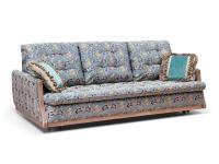 Небольшой уютный диван с деревянным декором. Спинка под наклоном. Тонкие изящные локотники |