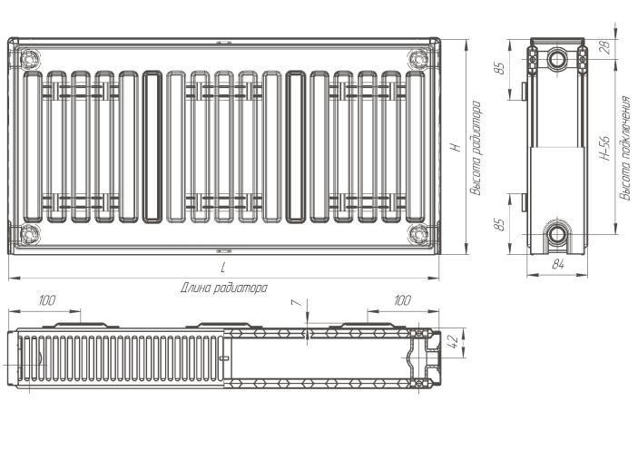 Радиатор Лидея ЛК 20-317 стальной 1700x300x84 мм