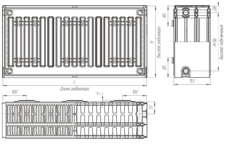 Радиатор Лидея ЛК 33-307 стальной 700x300x153 мм